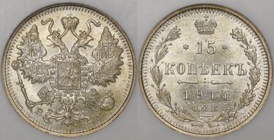 Лот 324 из 629. 15 копеек 1914 СПБ ВС MS 64