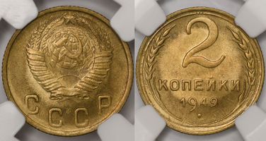 Лот 494 из 629. 2 копейки 1949 MS 66