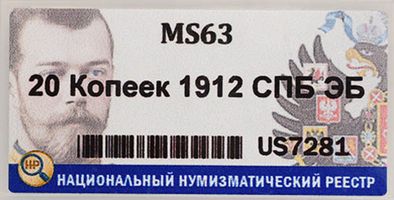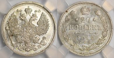 Лот 309 из 629. 20 копеек 1912 СПБ ЭБ MS 63