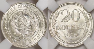 Лот 410 из 629. 20 копеек 1928 MS 65
