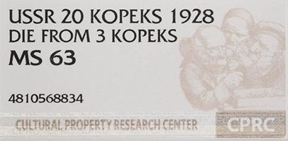 Штемпель 3 коп. В слабе CPRC MS 63