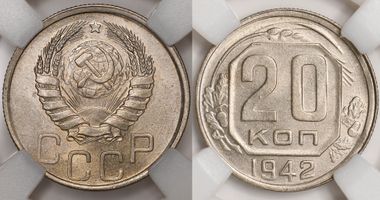 Лот 459 из 629. 20 копеек 1942 MS 64