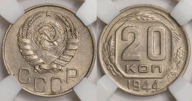 Лот 466 из 629. 20 копеек 1944 MS 63