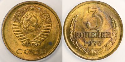 Лот 547 из 629. 3 копейки 1975 MS 64
