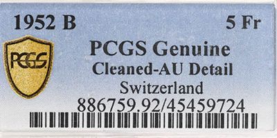 В слабе PCGS AU Det Cleaned