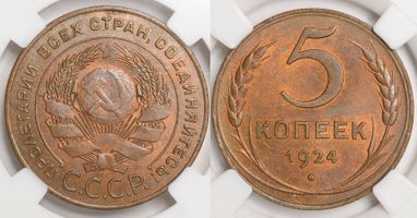 Лот 383 из 629. 5 копеек 1924 MS 63 RB