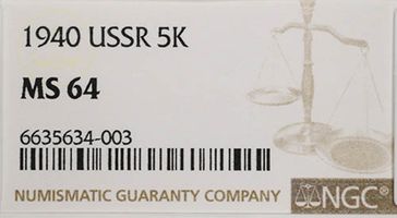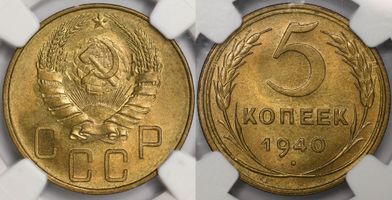Лот 452 из 629. 5 копеек 1940 MS 64