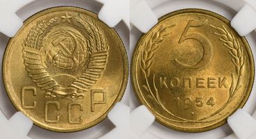 Лот 504 из 629. 5 копеек 1954 MS 65