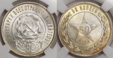 Лот 361 из 629. 50 копеек 1922 ПЛ MS 63