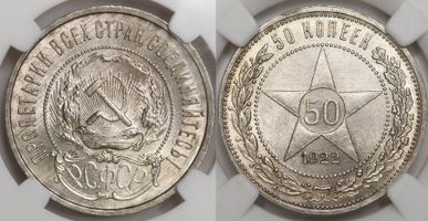 Лот 360 из 629. 50 копеек 1922 ПЛ MS 64