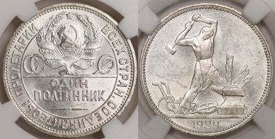 Лот 377 из 629. 50 копеек 1924 ПЛ MS 62
