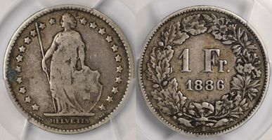 Лот 604 из 629. Франк 1886 B VF Det