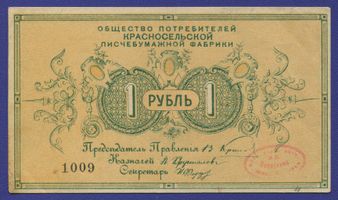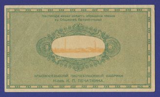 Общество потребителей Красносельской писчебумажной фабрики наследников к. П. Печаткина, Красное Село (Пушкин) с оттиском овального штампа общества. XF-AU