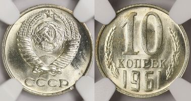 Лот 250 из 314. 10 копеек 1961 MS 64