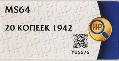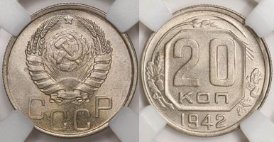 Лот 240 из 314. 20 копеек 1942 MS 64