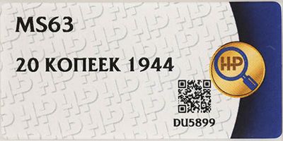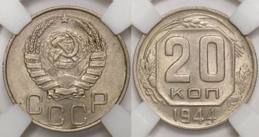 Лот 242 из 314. 20 копеек 1944 MS 63