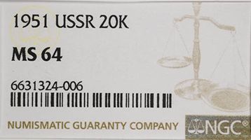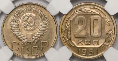 Лот 247 из 314. 20 копеек 1951 MS 64