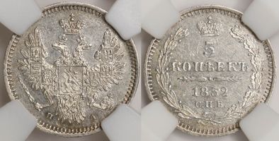 Лот 108 из 314. 5 копеек 1852 СПБ ПА MS 61