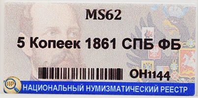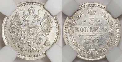 Лот 117 из 314. 5 копеек 1861 СПБ ФБ MS 62