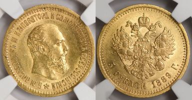 Лот 147 из 314. 5 рублей 1889 АГ AU 58