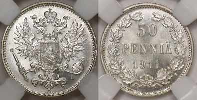 Лот 174 из 314. 50 пенни 1911 L MS 66