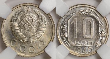 Лот 282 из 362. 10 копеек 1940 MS 64
