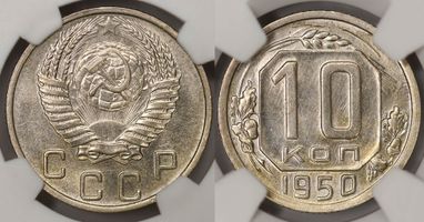 Лот 292 из 362. 10 копеек 1950 MS 63