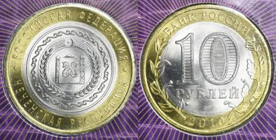Лот 346 из 362. 10 рублей 2010 "Чеченская республика" в буклете