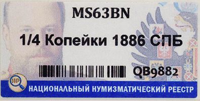 Лот 167 из 362. 1/4 копейки 1886 СПБ MS 63 BN
