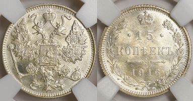 Лот 227 из 362. 15 копеек 1916 Осака MS 64