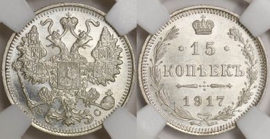 Лот 232 из 362. 15 копеек 1917 ВС MS 64