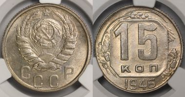 Лот 289 из 362. 15 копеек 1946 MS 62