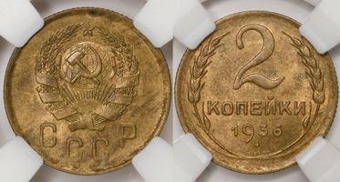 Лот 279 из 362. 2 копейки 1936 MS 64