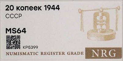 Лот 285 из 362. 20 копеек 1944 MS 64