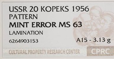 Федорин/ Ушаков № 246. Редкость R2. Медно-цинковый сплав светло-серо-стального цвета. В слабе CPRC MS 63