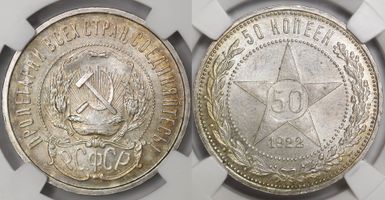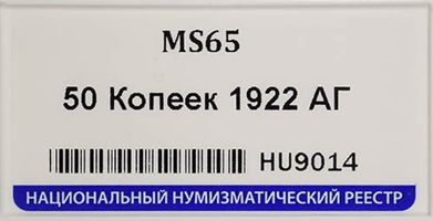 Лот 240 из 362. 50 копеек 1922 АГ MS 65