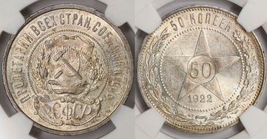 Лот 245 из 362. 50 копеек 1922 ПЛ MS 64