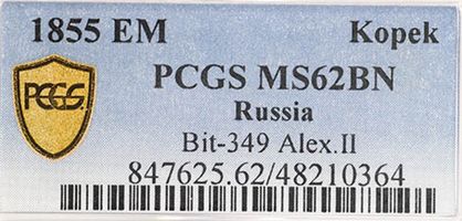 В слабе PCGS MS 62 BN