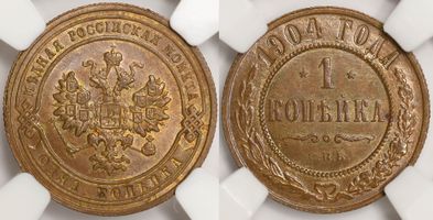 Лот 208 из 362. Копейка 1904 СПБ MS 63 BN