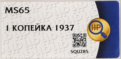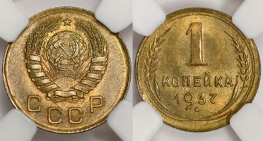 Лот 280 из 362. Копейка 1937 MS 65