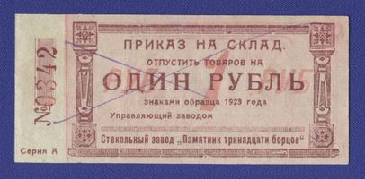 Стекольный завод «Памятник тринадцати борцов», г. Красноярск. Серия А, ручное крестообразное гашение. AU-UNC