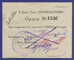 Объединенный Кооператив «Профработник», г. Москва. С оттиском печати кооператива, штампом и подписями ответственных лиц. XF