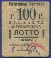 Волынское Губернское Объединение Инвалидов «В.Г.О.И. К.П.Д.» и Губкомпома, г. Житомир. «ЛОТТО» — домино, шашки, шахматы. С оттисками штампов общества и подписями ответственных лиц. XF