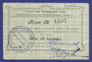 Алтайский Губернский Союз Рабоче-Крестьянских Потребительских Обществ, г. Барнаул. С оттиском печати общества и подписями ответственных лиц. XF+