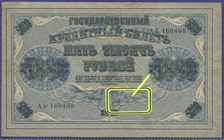 Пятаков-Шмидт. Серия АБ. ВЗ-горизонтальный. Брак печати: не пропечатан кассир. Редкость. VF+