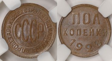 Лот 318 из 367. 1/2 копейки 1928 MS 63 BN