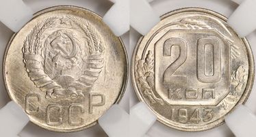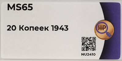 Лот 335 из 367. 20 копеек 1943 MS 65