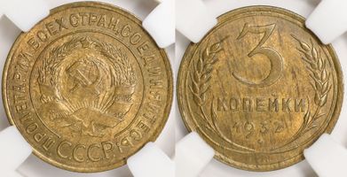 Лот 323 из 367. 3 копейки 1932 MS 63