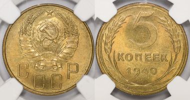 Лот 333 из 367. 5 копеек 1940 MS 64