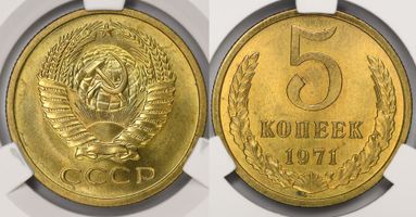 Лот 342 из 367. 5 копеек 1971 MS 65